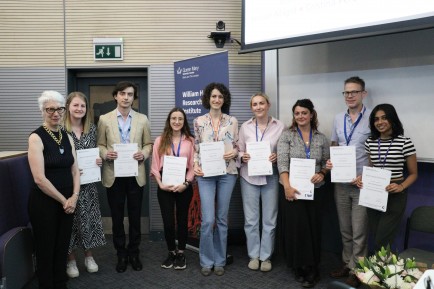 The winners for two JVA awards were announced at the 2023 William Harvey Annual Review Day in June: The John Vane Bursary Scheme and the Lay Communications Prize. Some of the winners are pictured below with one of the WHRF Trustees, Kathryn Kerle.